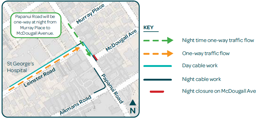 We've nearly finished work along McDougall Avenue, Browns Road, Bretts Road, Chapter Street and Mays Road. We thank the community for their patience while we've been working. Over the holiday and New Year period, we will be working to install the new cables along Office Road, Akela Street, Aikmans Road, Leinster Road and Papanui Road. We will also complete work to cross Innes Road.