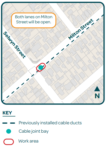 We’re installing a new underground 66kV power cable between the Milton Street substation and the Halswell substation on Sparks Road to strengthen our electricity network.